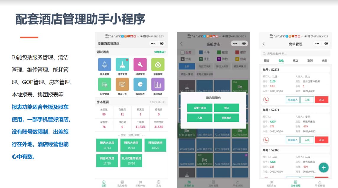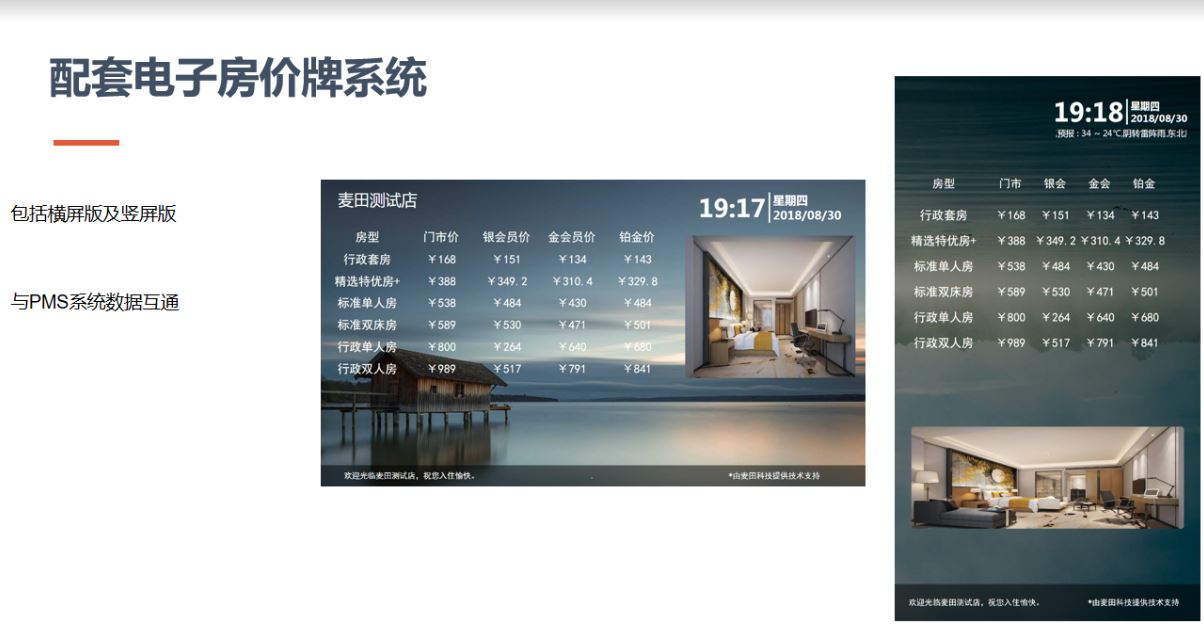 1. 降低学习成本:操作简单,2小时学会。 2.节省运维成本:所有维护都可云端进行,统一维护。 3.OTA直连,对接携程、艺龙、去哪儿、美团、飞猪。 4.完美适用多个平台和终端设备。